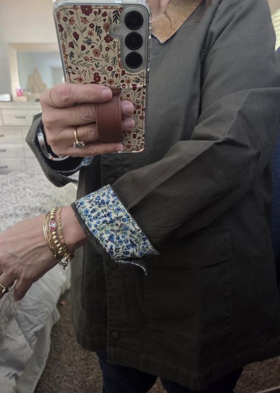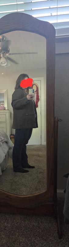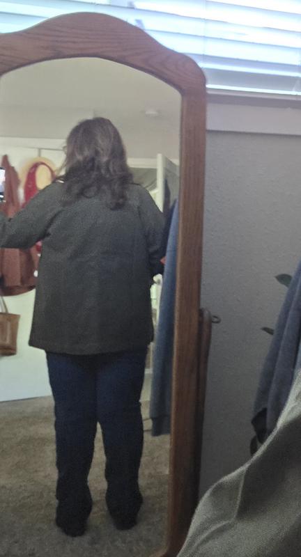 I am so pleased with this jacket. I can wear it with jeans and tennis shoes or with leggings and boots for a more dressed up look. I like the versatility that I have in what I can pair with the jacket. I don’t always like to carry a bag and oftentimes my pants don’t have pockets. The snap pockets on each side are so useful!