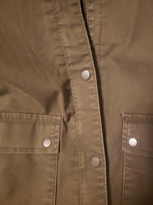 Great jacket for change of season..fall into winter. Jacket not too light but not too heavy.pairs very well with denim and courdoroy. Love thai you can zip up or snap up to close the jacket. Love the path pockets.