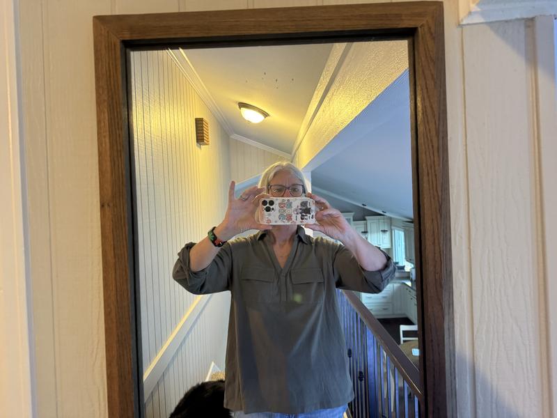 The knit shirt is really a soft knit. It has nice drape. It fits loosely but not overly. I like the V-Neck. The plackets on the front do not wrinkle when washed. The sleeves roll up and have a button tie to keep them up. The shirt looks nice with jeans, pants and skirts.