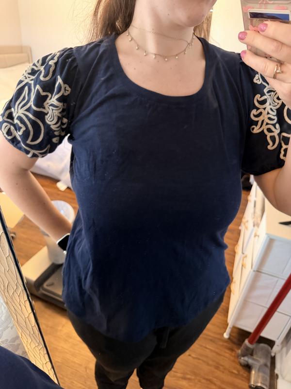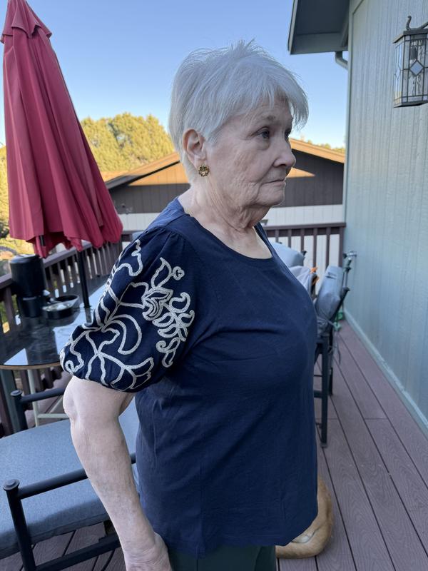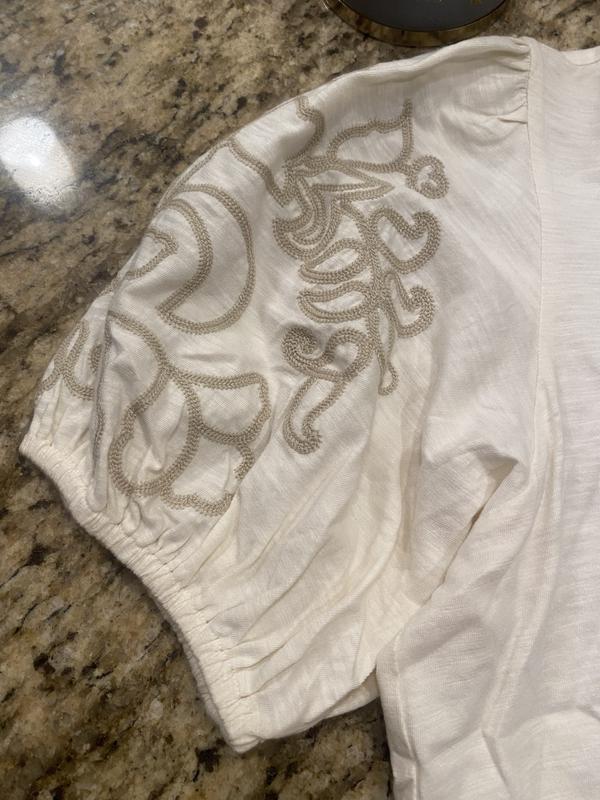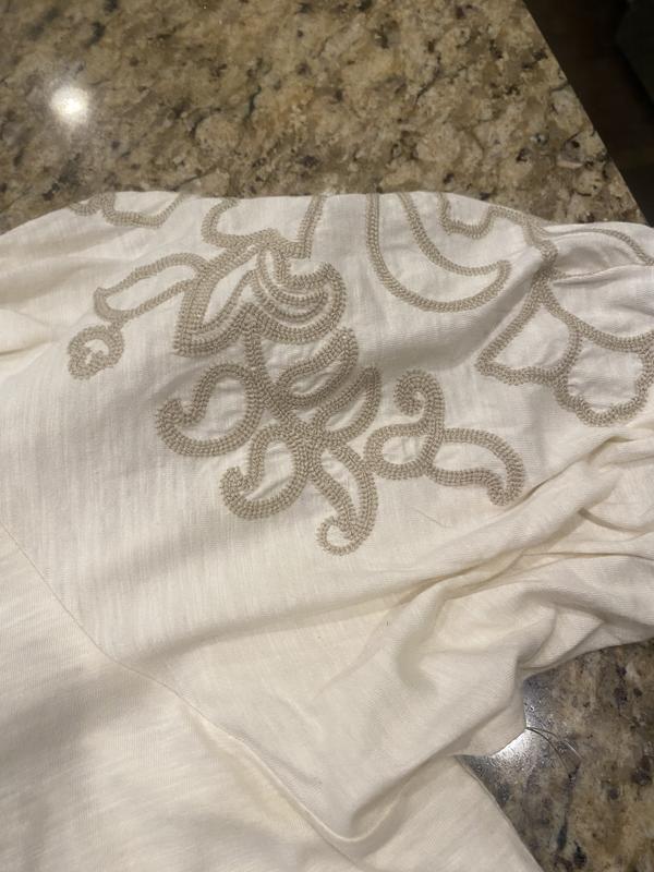 This top is comfortable, stylish, on trend. I really like the embroidered sleeves. However, the reason I gave 4 stars is that I’m not a fan of big puffy sleeves, they make me look wider and broader in the shoulders. I ordered two sizes (my regular size and one size up). My regular size fit well, I’d say this top runs true to size.