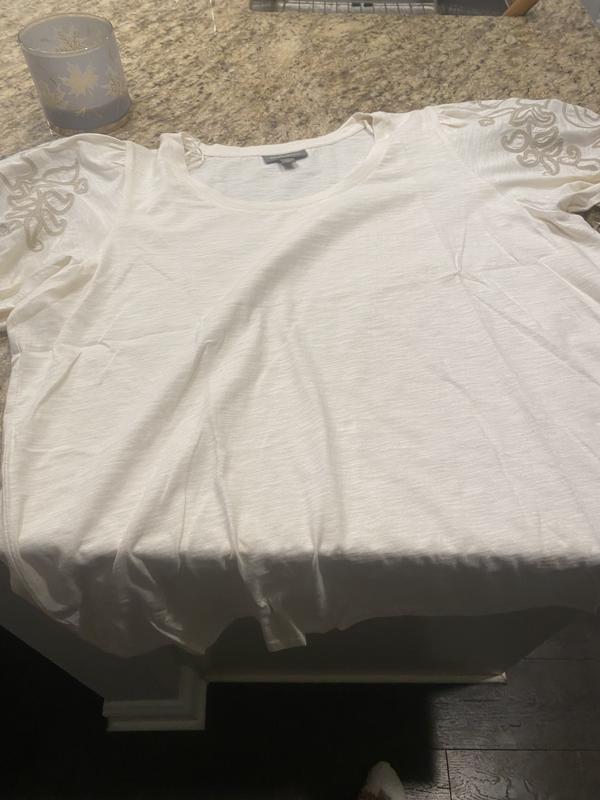 Style & CoPlus Size Cotton Embroidered-Sleeve Top, Macy's Exclusive