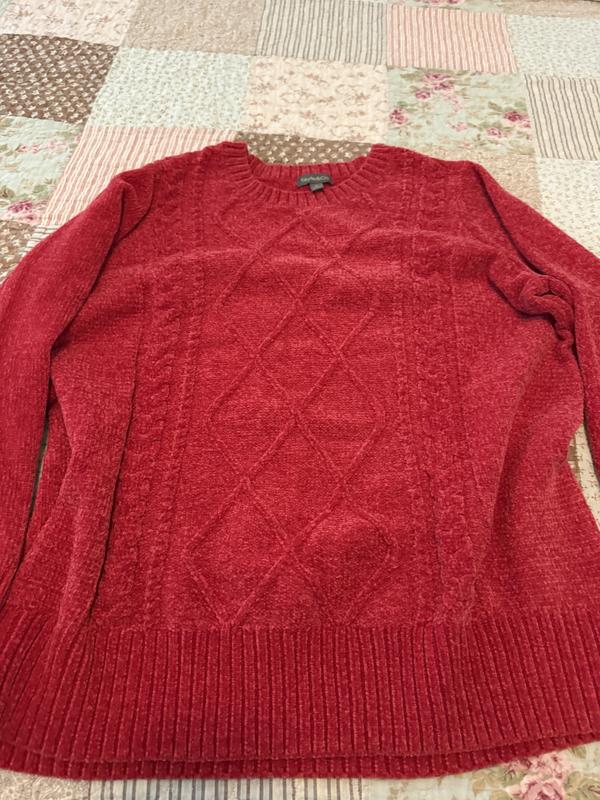 I received this sweater as a promotion to review. Upon opening, I immediately noticed the color which was a very light baby blue. For a winter sweater, I would not wear that color personally. I had a family member try it on and I took a photo. The sweater is very soft and feels like chenille. It’s like a boxy style fit and hits a little below the waist. Although it’s not my taste in clothing, I would buy it for an XL older woman because it is nice and comfortable.