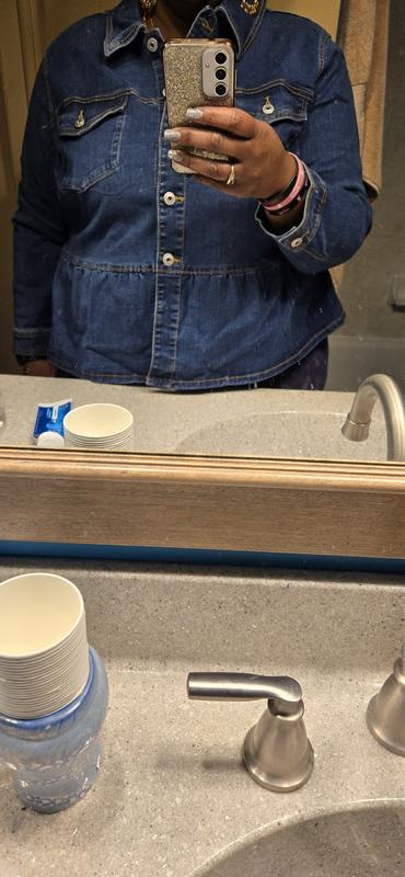 I love the color of this jacket and wanted to love it. But the peplum shape didn’t work for my body. I felt like the jacket could have been better a little longer. The “peplum” shape of the flared ruffle is worth considering if you buy this jacket. The jacket is lightweight enough to layer with tops, boluses, and thin sweaters.