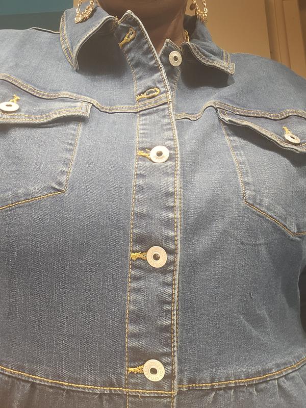 Its a TOTAL hit!!! I would buy this again and again!! The feel of the jacket is soft for denim. The length is perfect and it has the right amount of stretch. The buttons are the exactly where they need to be. I LOVE IT!!!