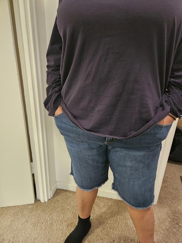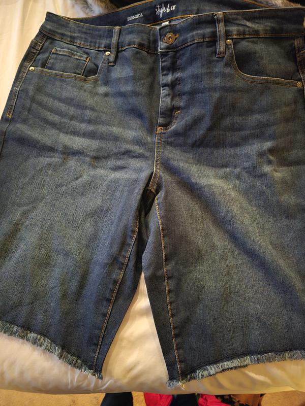 Plus Size Denim Raw-Edge Bermuda Shorts, Created for Macy's