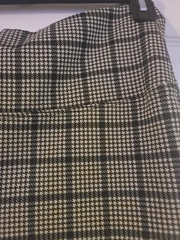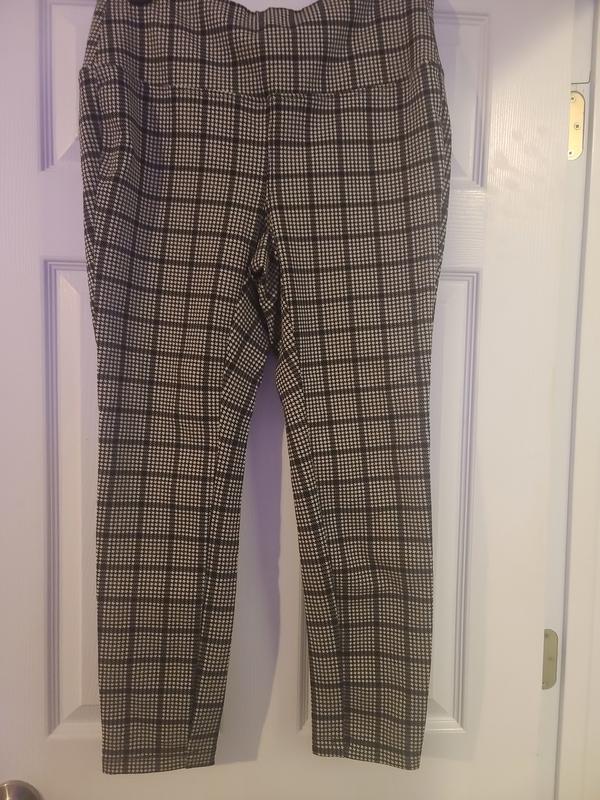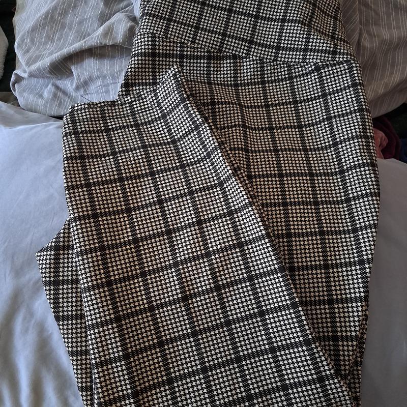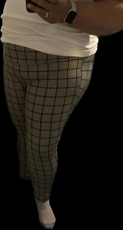 I love the houndstooth pattern on this! The houndstooth is so intricate when you look closely at these pants. These pants are extremely comfortable and have a little stretch to them. I enjoy pairing this with a small black heel and have been given many compliments!