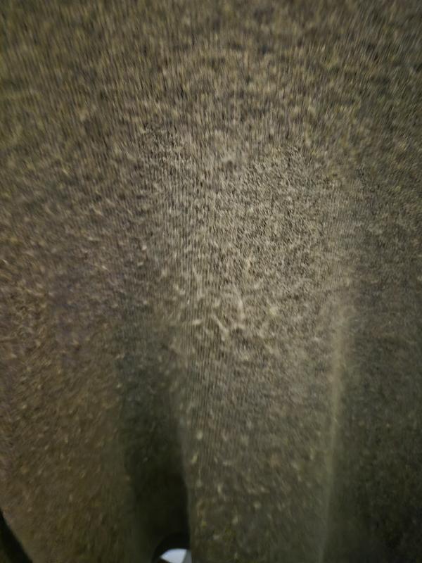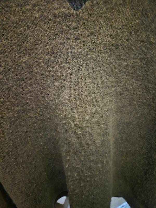 I bought this green sweater because i have it in grey, but the one i received has already been worn and returned by domeone else and sold to me. The tag is a replacement tag, the strap to help hold it on hangers and such was removed and most importantly the pilling of the sweater resulting in lumps on the front of the sweater is very noticeable. It is very disappointing.