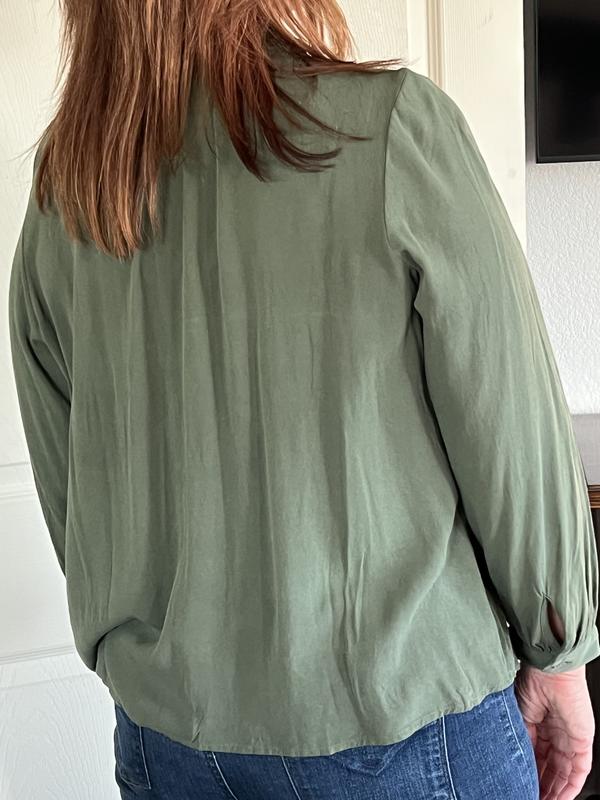 Pretty color (l purchased the pink) and style but the fabric is very wrinkly. Cannot be worn without ironing.