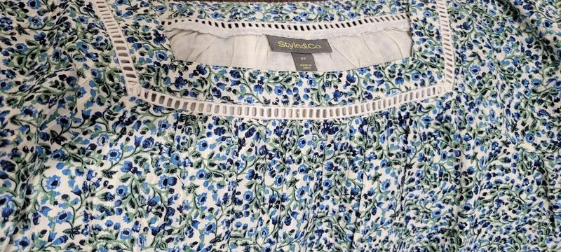I usually like a lot of Style & Co merchandise, but this dress is not flattering at all. The material is not soft and not stretchy. The design is okay, I like the colors, and the lace touches are nice but that is all I can positively say. There is an interior lining that makes this dress more uncomfortable and tight underneath and I am not so sure the lining is even necessary. The dress runs very small as well. So if this is something you might like, I would size up.