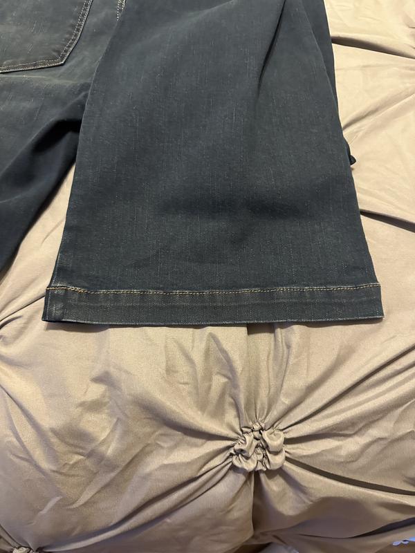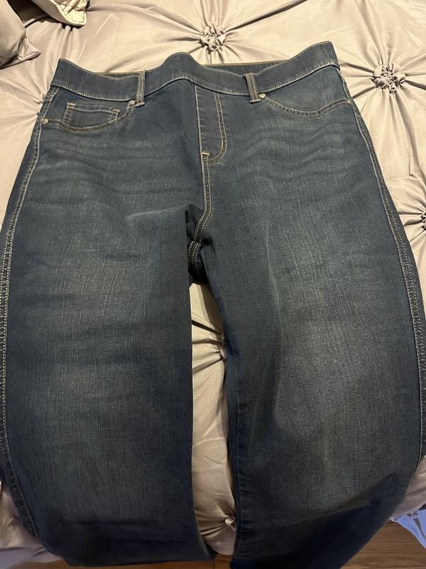 I love how thick the denim material is and how comfortable these jeans are. They move with you and are not binding. They are very flattering and unlike most pull on pants they do not sag at the end of the day!