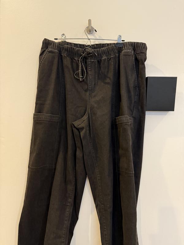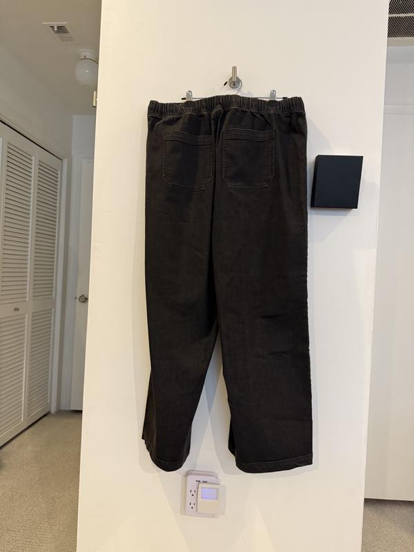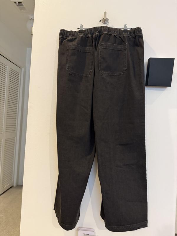 A great pair of comfortable jeans. The drawstring waist is fashionable and flattering. I also like the dark wash denim because I can wear them dressed up or down. The quality and finish is also great. I think these jeans are durable and a wonderful purchase.