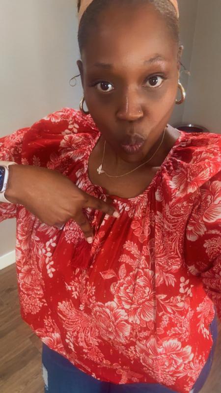 Plus Size V-Neck Printed Bubble-Sleeve Blouse, Macy's Exclusive