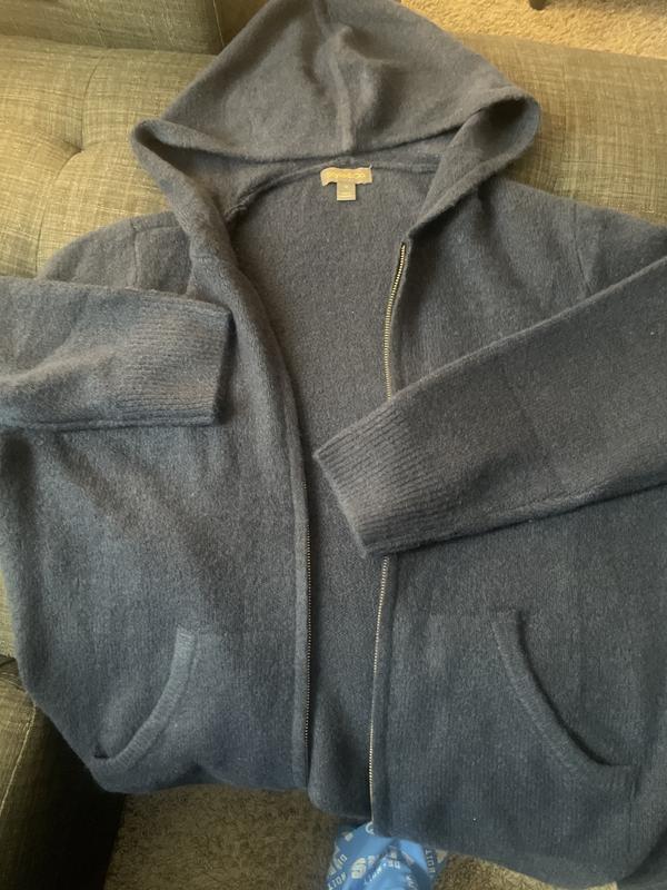 The sweater hoodie is super soft and comfortable. Received so many compliments. The sizing is true to size and a perfect fit. Sweater/Jacket hoodie has a cashmere feel. Sleeve length is perfect as well as length for 5’7 frame.