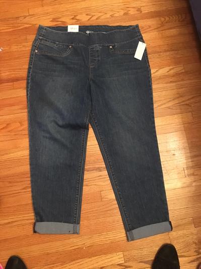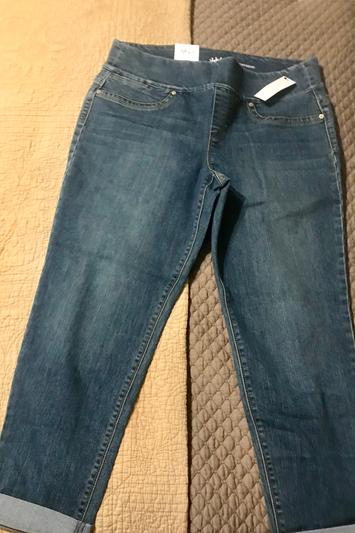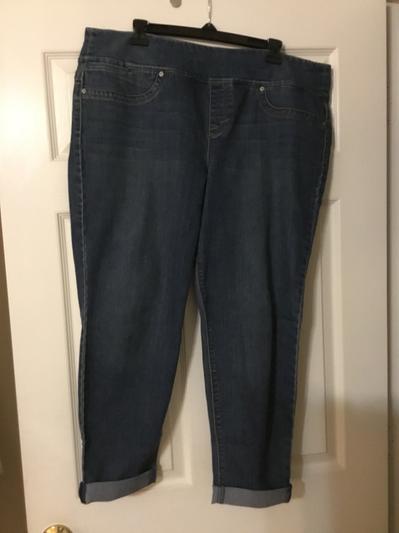 I had been looking for a pair of pull on cropped jeans for awhile. These looked perfect so I purchased them in a size small. Unfortunately the inseam measures 28" and even when cuffed they are much longer than pictured. I ended up keeping them as I had gotten them on sale. Still searching for a pair of cropped jeans!