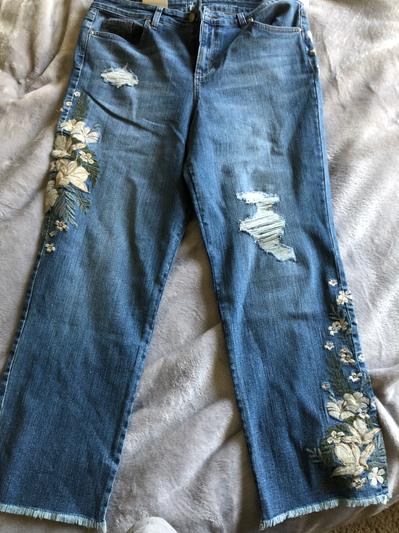 Had been looking for a pair of embroidered jeans for awhile with no luck. Then got these to try & love them. The neutral colors of embroidery go with everything. The length works perfect with tennis shoes,heels or boots! I have gotten so many compliments on them.