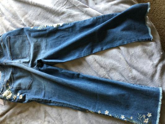 I really like the crop jeans very relax fit, was a little to big, could've have used a smaller size. I didn't like that they had embroidery on the side of the legs that took away from the pants. A flower yellow and gold embroidery on both sides of the pants leg. other then that the crop jeans were oaky. I would recommend if you are into embroidery. the pants fit true to size. I did get them free, xo I would buy them with out the flowers embodied on them . Also the pants had a distress look that was nice .