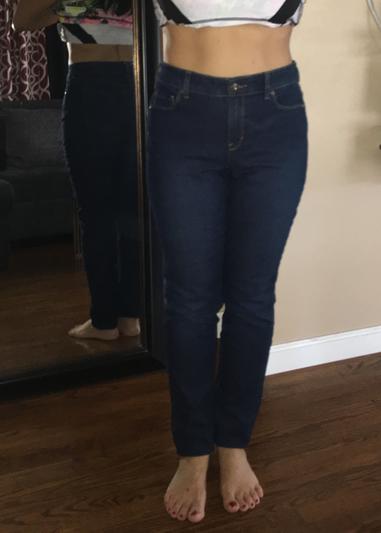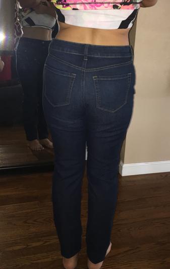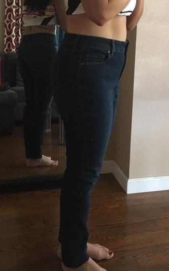 So you're mileage may vary, but these jeans were not suited to my shape. I am thick, with big hips and thighs and a smaller waist. These pants were uncomfortably tight on my thighs and calves and short-waisted enough to give me a pronounced muffin-top. Not the best choice for a curvy gal!