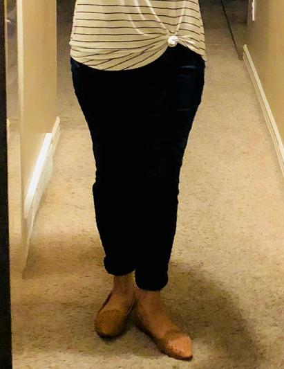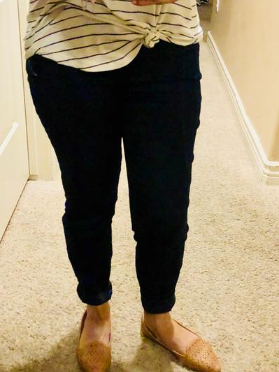 These pants are nice and stretchy. However, they were not very comfortable because of the fabric. They were itchy to me. I dressed them up with a nice button up crisp white shirt for work and although the outfit was cute, I could not wait to get out of these pants. Maybe I needed to go up a size because they fit just right.