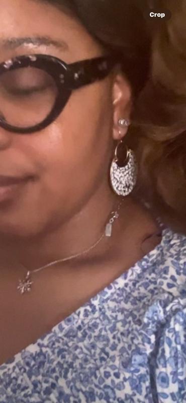 Perfect hoop earrings, they almost have a white leopard print to them so I love parking them with any white outfit for a pop of gold color