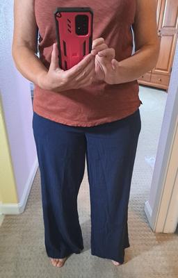 I love these pants. They're not too long and are so cool on a hot day. I received many compliments, very chic looking.
