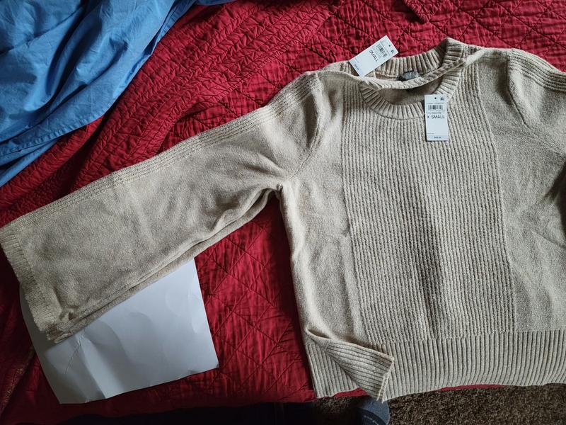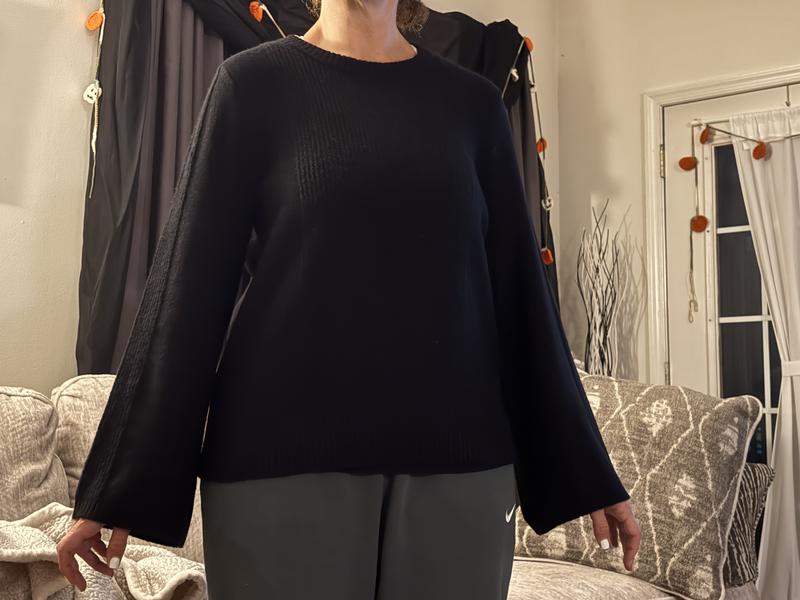 This sweater is such a pretty color and the sleevesadd a perfect touch to it. This sweater with a cream colored pant and jacket and your ready for that holiday party or gathering add gomd jewelry and yohr ready