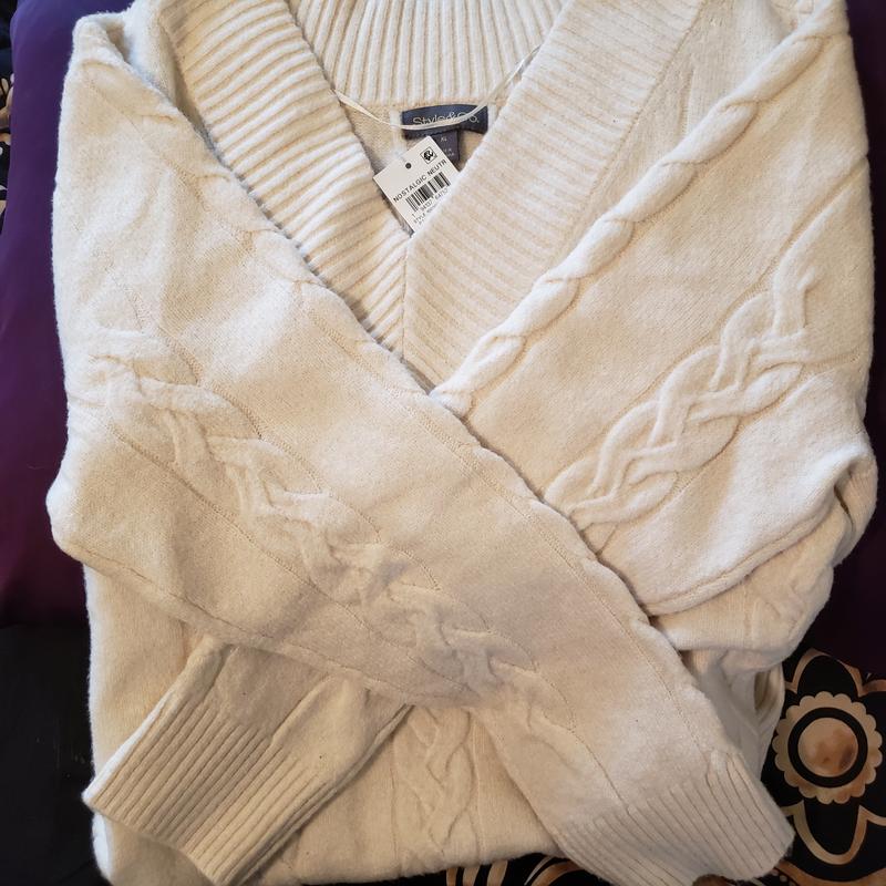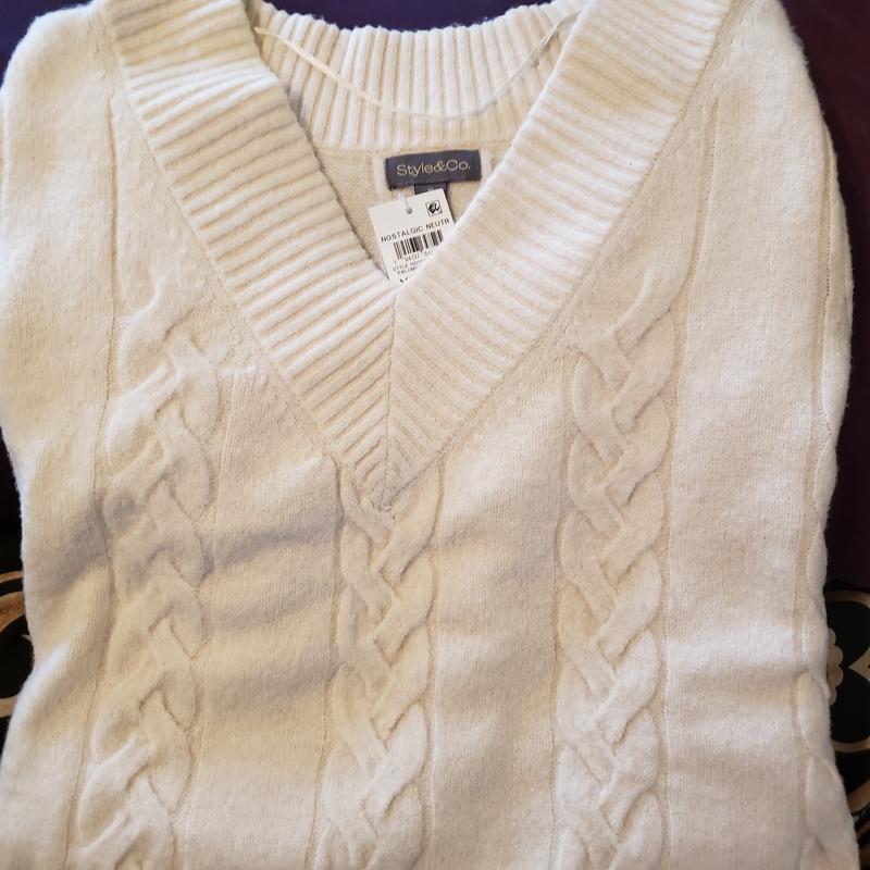Looks good, material is soft and with just the right warmth Would love to have small side slits,I have a pear shaped body and it is hard to find tops/sweaters that are kind to this body shape