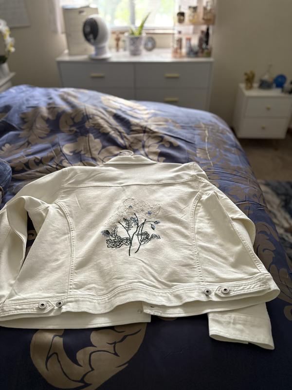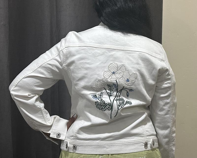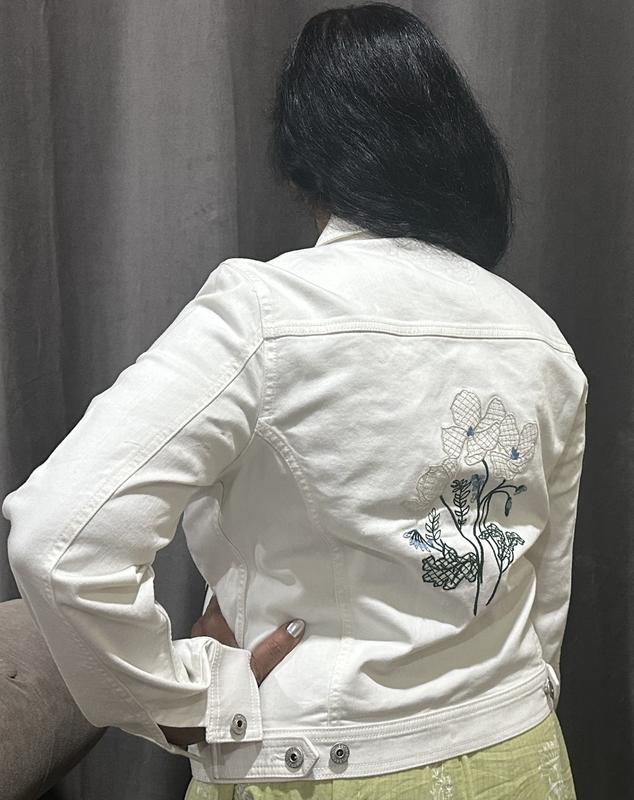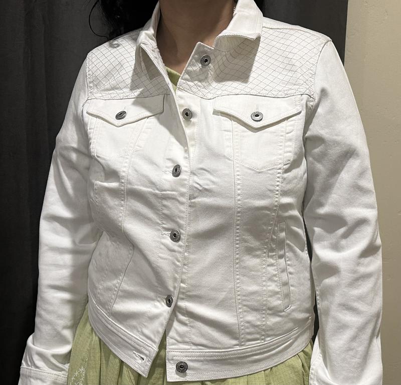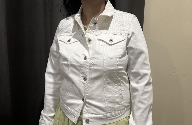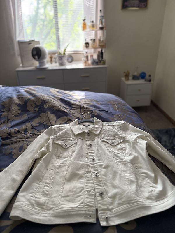 Style & Co. Has become my favored brand of clothing from Macy's. This jean jacket is well made, nice,y detailed. the right combination of cotton and spandex, fits well, and is a beautiful autumn green color. I bought the coordinating pants with button details on the legs. An Incredibly good value on sale.