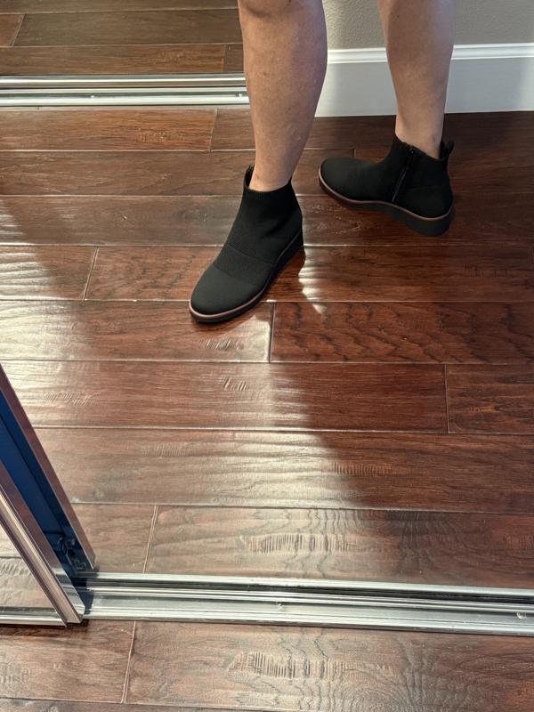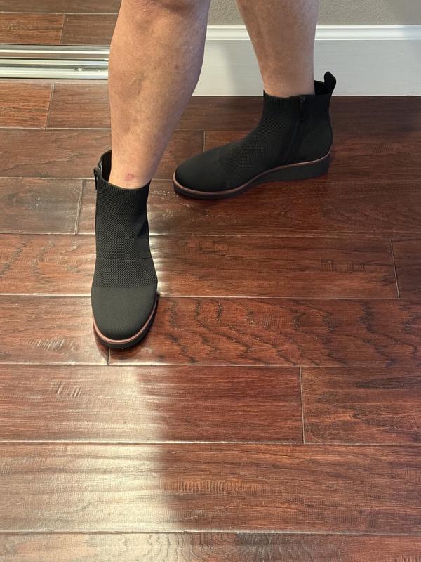 Love these super chic and comfortable booties. The side zipper makes them easy to slip on and off. The wedge heel makes for a comfortable, supportive arch. Love the almost sweater like weave of the material! These booties can dress up a pair of jeans for a casual day or pair with a mini for a cute, sporty look!
