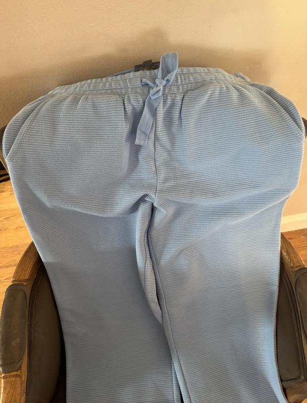 These comfy corded pants with drawstring are better quality than expected. They are thicker and warmer for the cold months. Only downfall are that they are so big. I got a small but looks like a large.