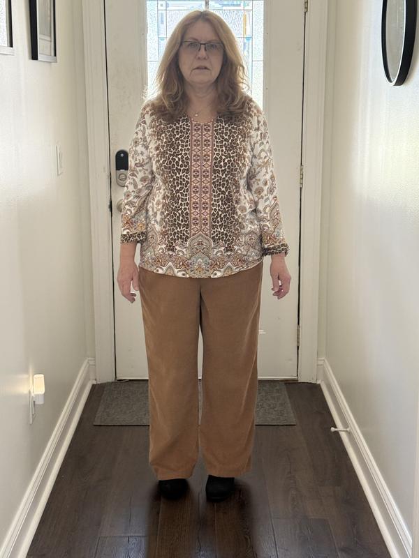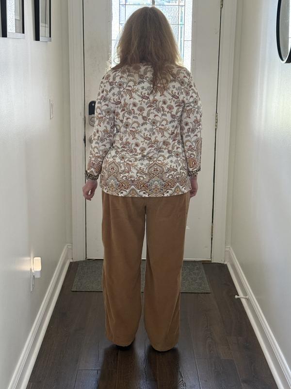 Got the caramel kiss and the red syrup colors and really like the colors..I wear size 16 so ordered the XL and the fit is ok, just a little long. The corduroy is really soft and should launder nicely.