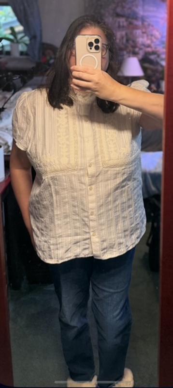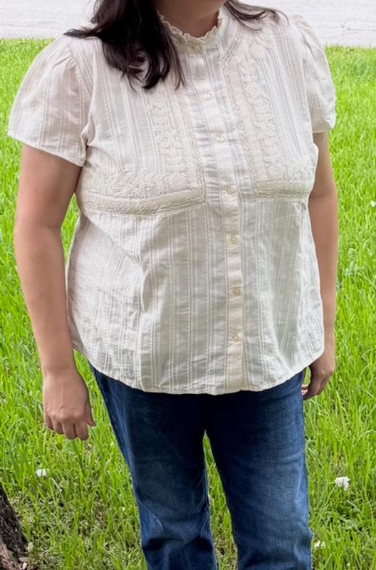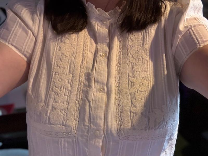 Cute top. The embroidery adds a little something extra. Love that it's cotton. Perfect color for fall. True to size. I ordered in a medium