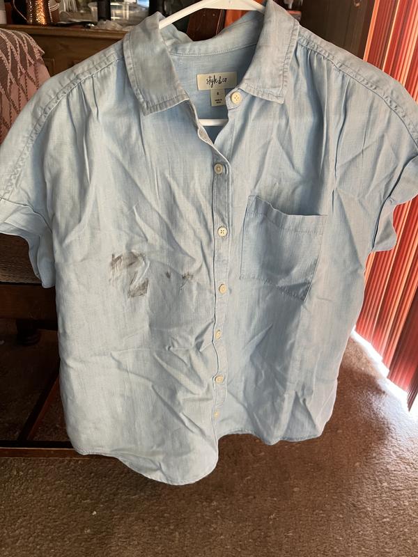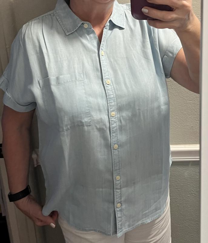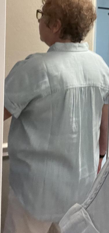 This is a great summer shirt. The lightweight cotton fabric is very pretty.