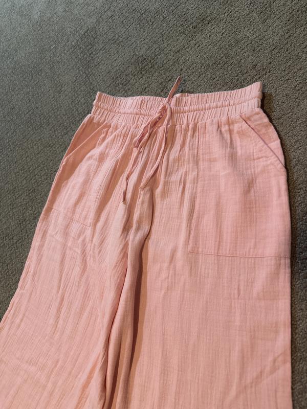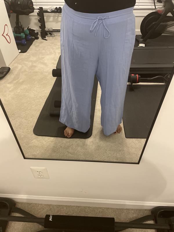 The pants were wide-legged but they were wider at the top than the bottom, so not very flattering. They didn't flow from the top to the bottom