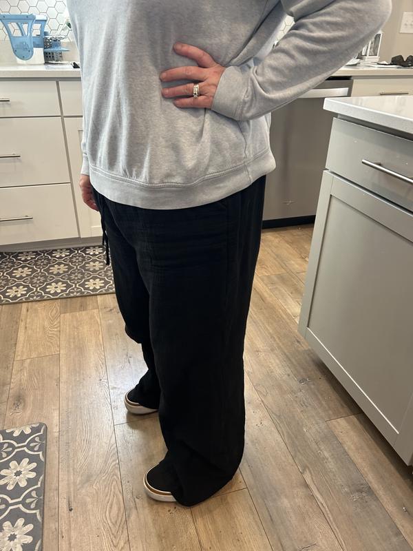 Style and Co has cotton gauze pants that she wears comfy and look fabulous. They are a heavier weight which creates a warm look. They can be worn casually or for dress. They come in white or black. A must for the summer.