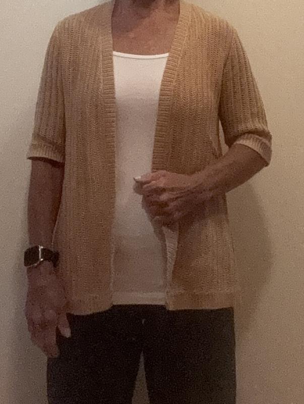 It is a light sweater to wear in the warm weather. Ibwish it were a little fuller for large.