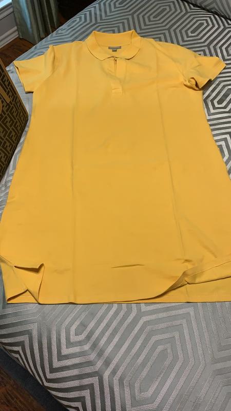 This is not my best purchase. It is 100% cotton which means it wrinkles, shrinks if washed in warm or hot water and the neck is open with no buttons. I like to wear the collar up but this collar does not work for that. Still considering sending it back.