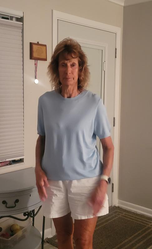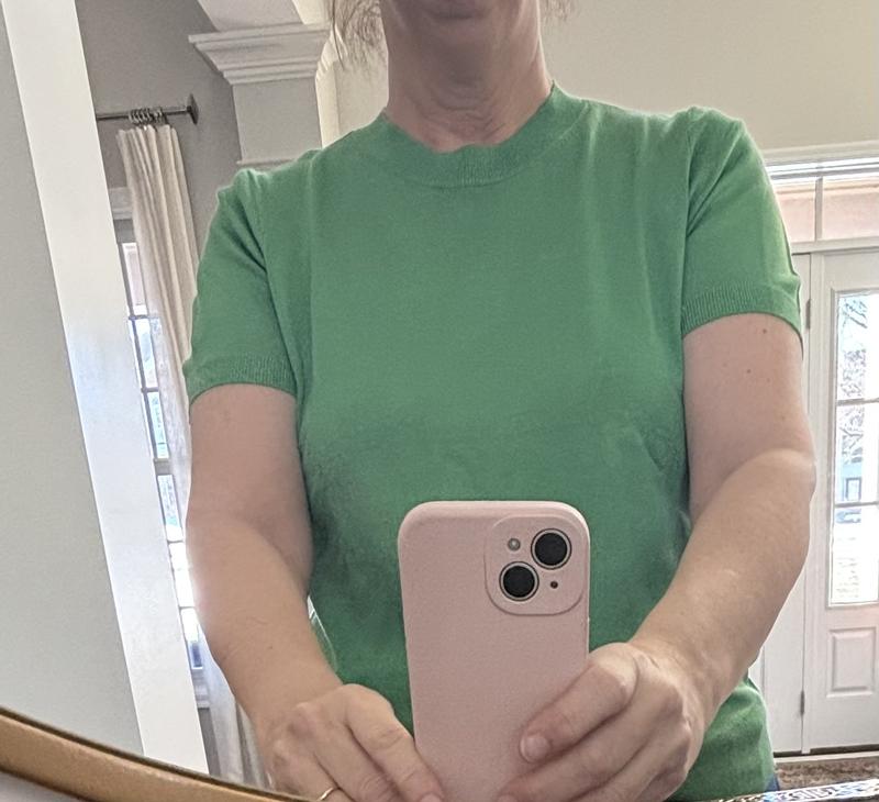Lovely short sleeve sweater top, I love how soft it is. Great for work, can be casual and formal. Very good deal.