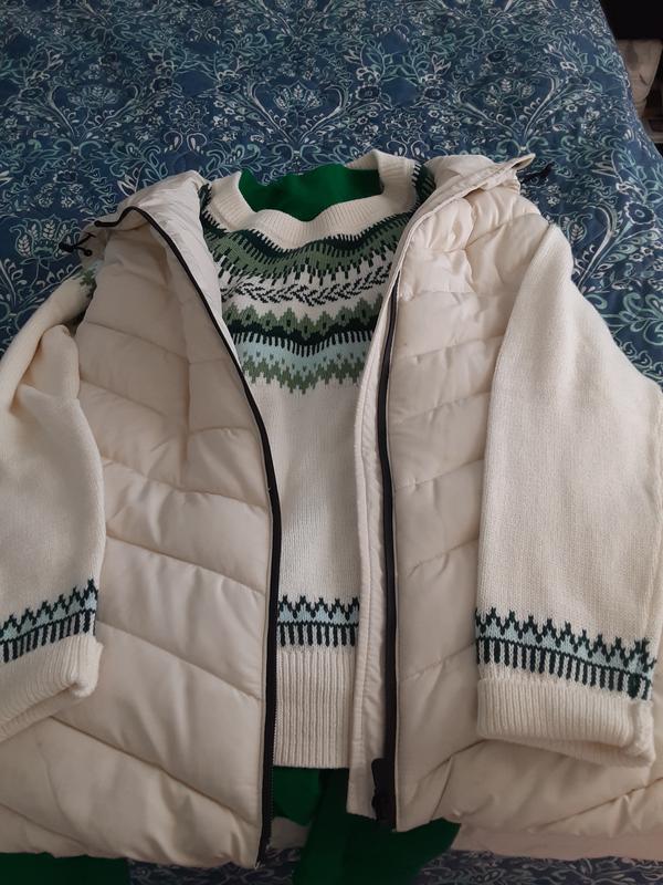 I wore my new sweater for the first time yesterday with a mock turtleneck & puffer vest. It was very comfortable, the pattern I got was more modern & stylish I felt. I have not washed it yet, but am overall satisfied for the look I wanted to achieve. The sweater is not very warm, but you can add a layer underneath &/or over it in colder weather. Perfect for indoor wear though!