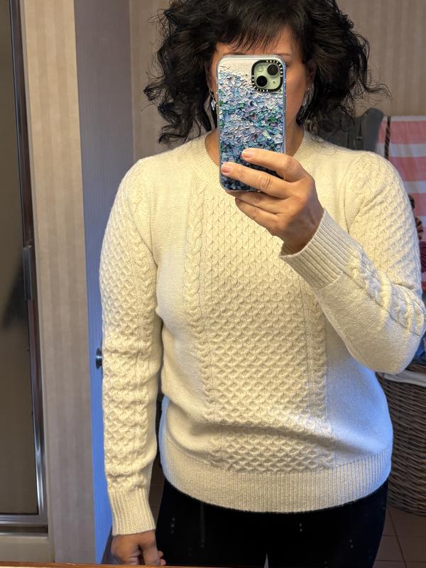This sweater is undeniably beautiful—the color is rich and elegant, adding a lovely pop to any outfit. But what truly sets it apart is the luxurious feel: it’s incredibly soft to the touch and provides exceptional warmth, making it perfect for chilly days. It wraps you in cozy comfort like a wearable hug. That said, while it’s a joy to wear, the fit doesn’t quite enhance the silhouette as much as I’d hoped. It leans more toward comfort than contour, so if you’re looking for something figure-flattering, this might not be the ideal choice.