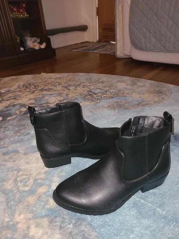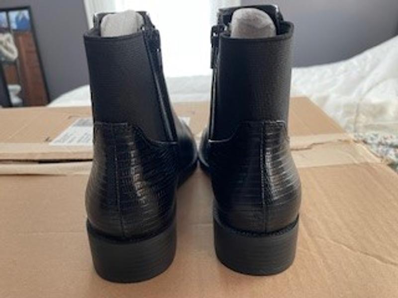 These are your basic booties with minimal cushioning. My pair is size 7. They fit well in the width but the footbed is longer than a typical size 7. They look similar to cowboy boots when worn with pants that aren't tucked in. I bought these in the store's Last Act section, so I can't complain about the value for the price, but I would not have paid full price for these shoes.