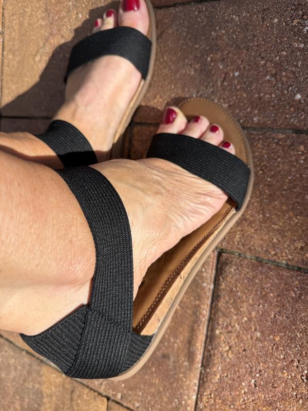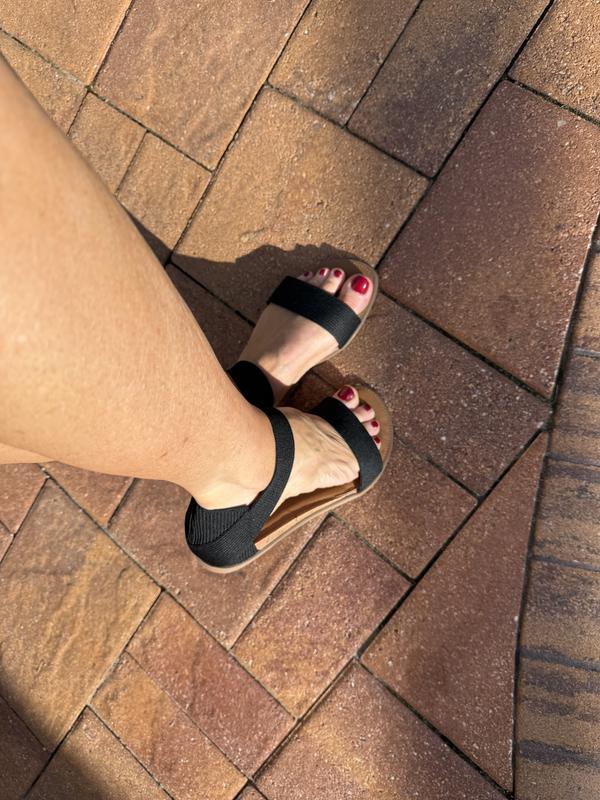 I have this cute sandal in black. I haven’t wore it yet for long distance but it seems very comfortable. I like the look and it’s a perfect summer wear. It might run a tiny little big but it’s not bothering some because it holds my ankle in place. Material and design is very flattering. It’s a keeper for sure.