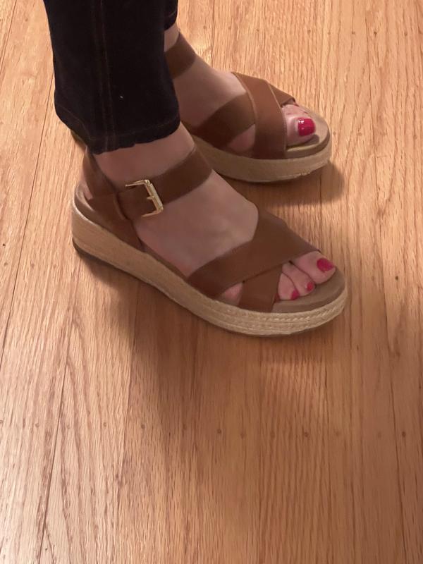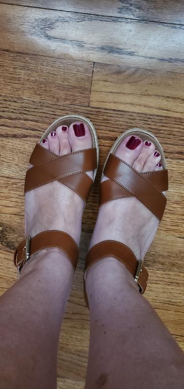 Cute shoe that fit well. Two months of wearing it off and on, and the ankle strap pulls out of the sole, ripping the vinyl. I paid way too much for shoes that fell apart that quickly.