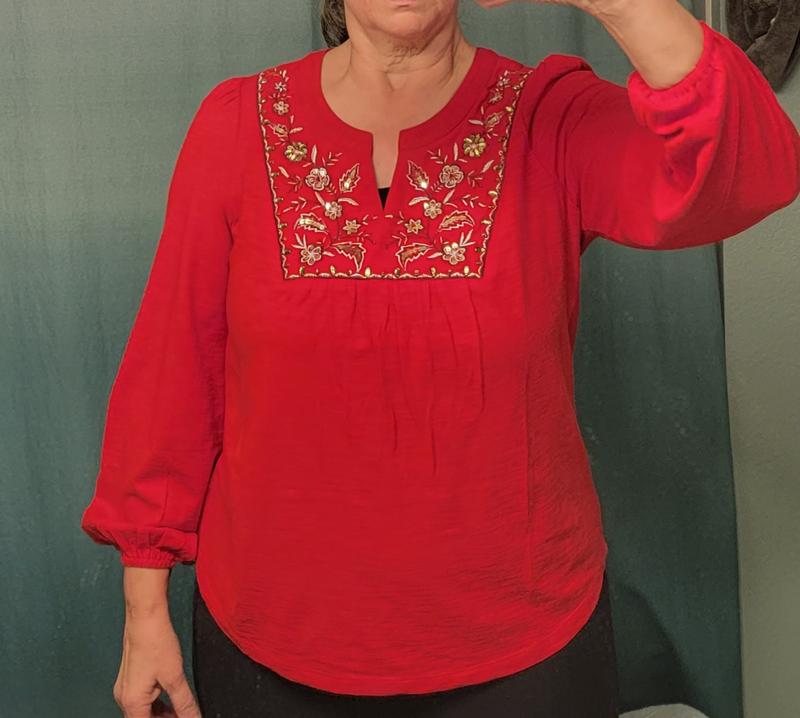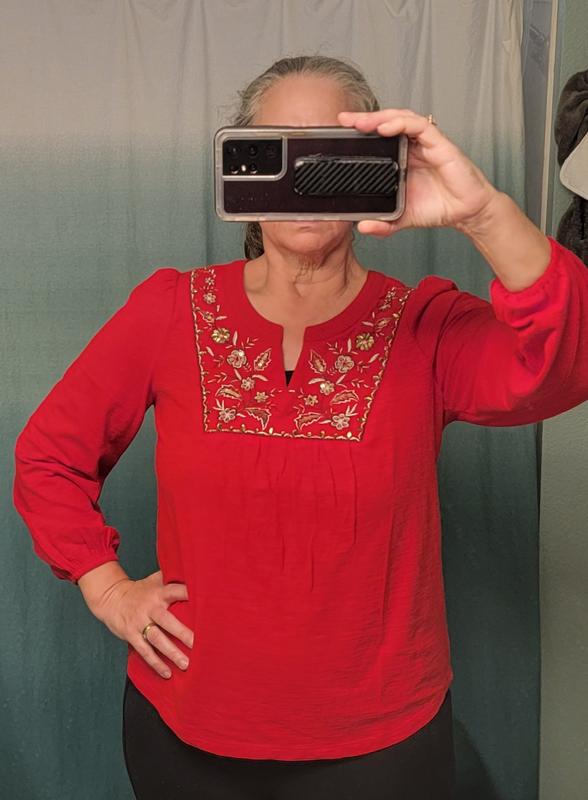 Women's Embroidered Embellished Cotton Blouse, Created for Macy's