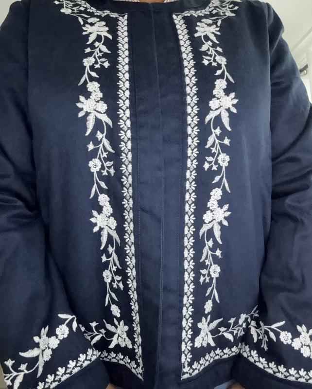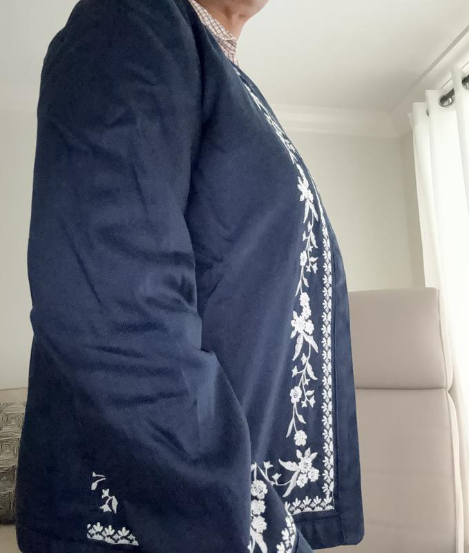 This is one of the best quality Jacket i have, color combination is very unique. It is a stylelish jacket you can wear either in office or a party. Desing and the cut is very attractive. Good for fall or winter season. I love this Embroidery jacket so much and highly recommended to others.