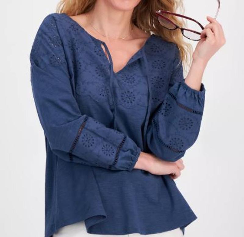 Women's Eyelet-Trim Tie-Neck Peasant Top, Created for Macy's