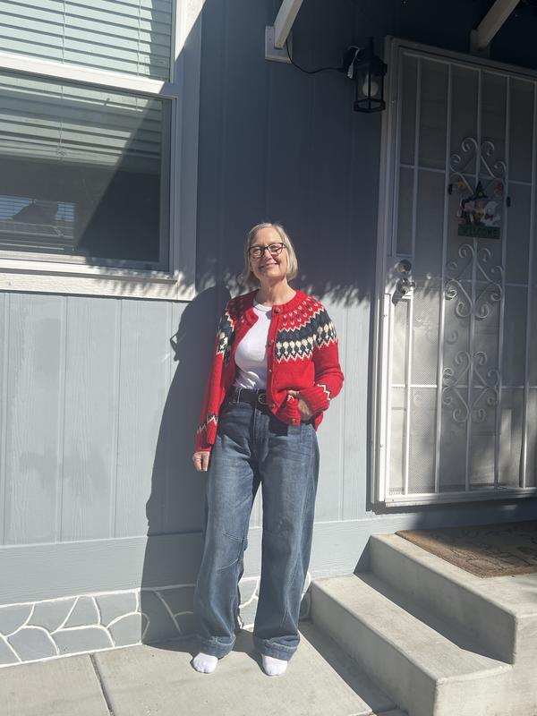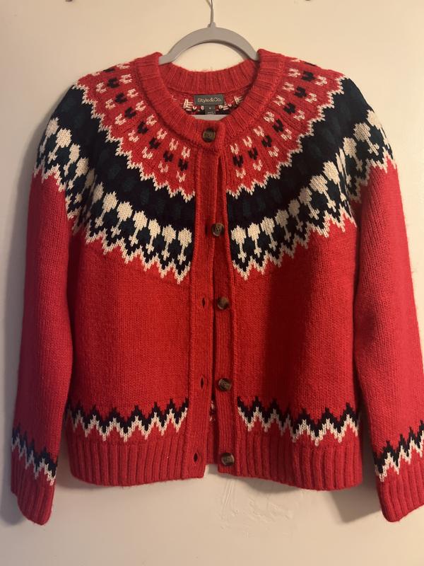 Gorgeous Fair Isle Red cardigan sweater M