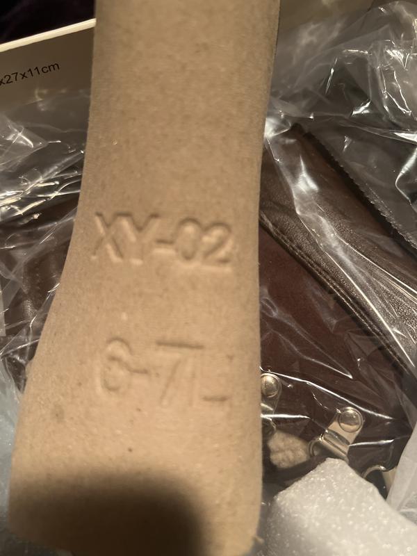 The size 6- but the shoe is off ! Defective for sure- I look in the stuffing it says 6-7!L!! Its huge Wow unbelievable false advertisement- and now the smaller size is gone. Smh Details about the shoe truthfully!! Not false advertising