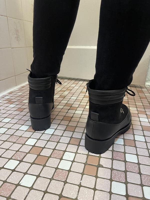 Boots are cute a little wide. just put thick socks with these boots. I like the side dipper makes it easier to put on.