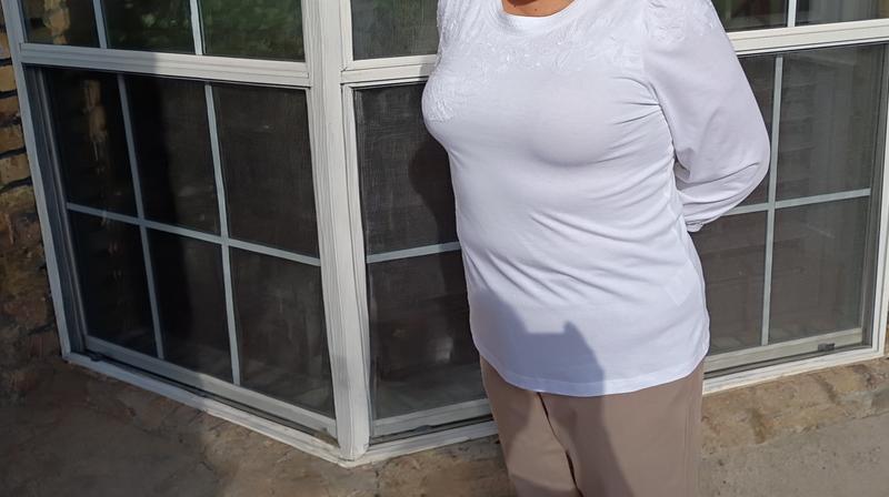 This is a pretty white top, I got it in a size small, I should have gotten it in a bigger size. It isn’t tight, but it doesn’t look good on me because it’s small. It looks well made; I only found a loose thread. It washes well but I didn’t put it in the dryer because of the sequins.The embroidery is beautiful!