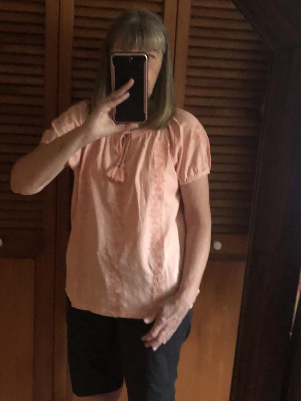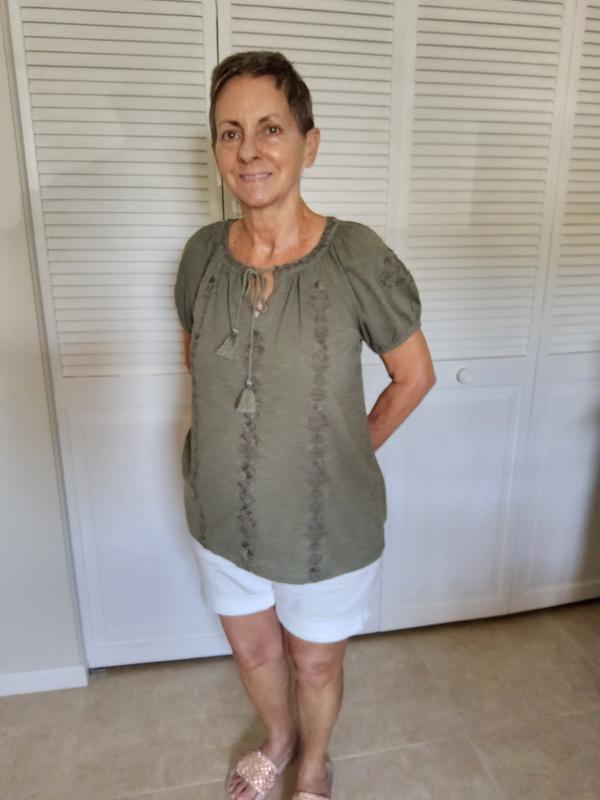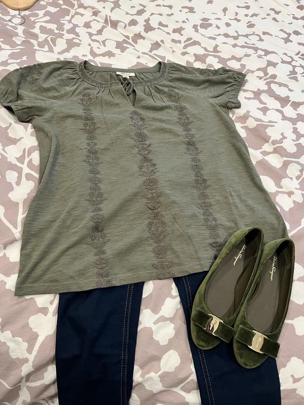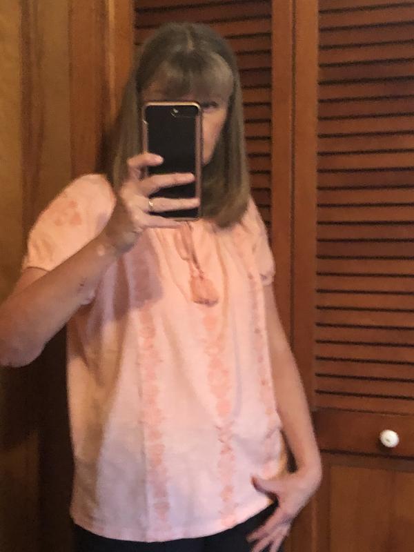 I really like the color and fit of this top. The embroidery adds a nice touch@